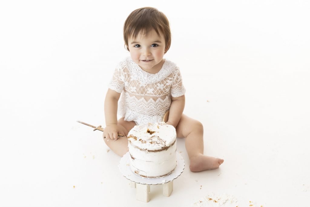 Una tarta preciosa, deliciosa y tu bebé, ¿qué podría salir mal? La naturalidad y sus gestos son lo más importante, así que dejaremos que tu peque interactúe a su aire con el pastel. ¡Te aseguro que lo va a disfrutar, y tú también!